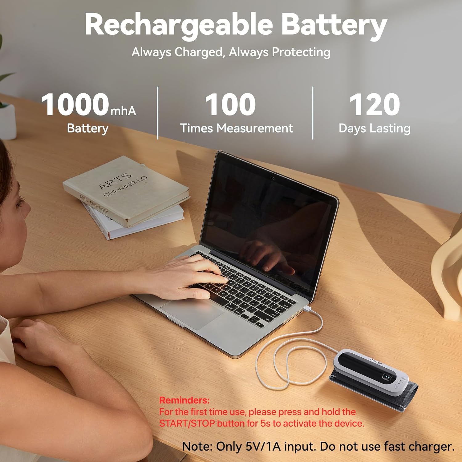 Checkme Rechargeable Blood Pressure Monitor, Large Screen BP Machine