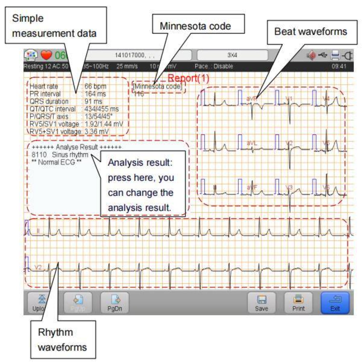 ▶Offers massive storage for 3500 files, with the ability to view and print in 5 report formats (ECG, XML, JPEG, DICOM, PDF).