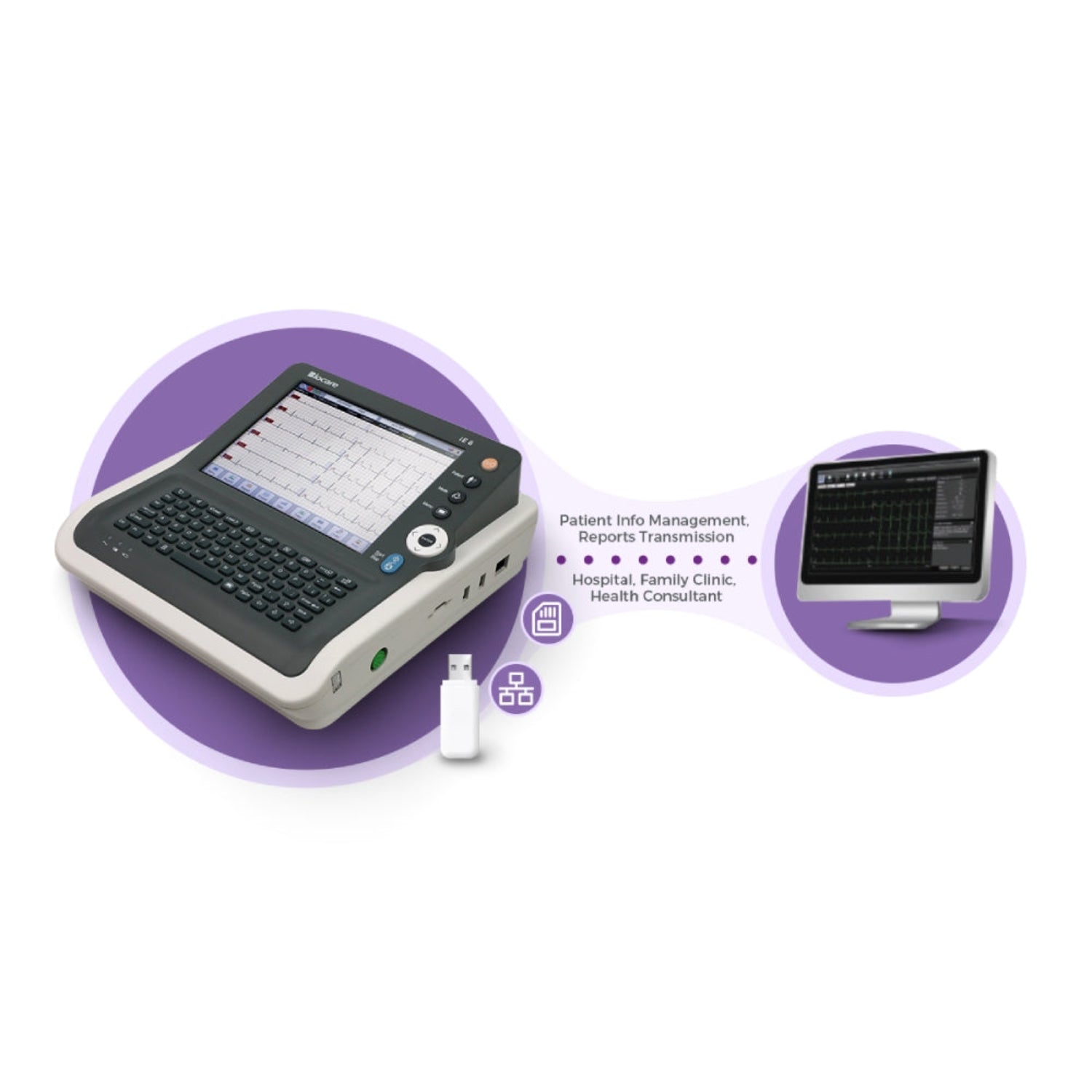 ▶Highly interoperable, connects to ECG management system via LAN and USB 2.0 flash drive, supporting HL7 integration.